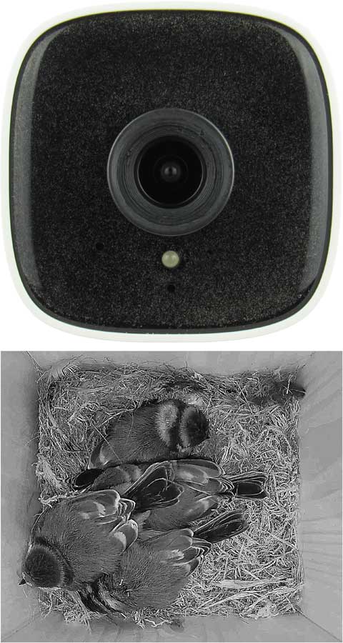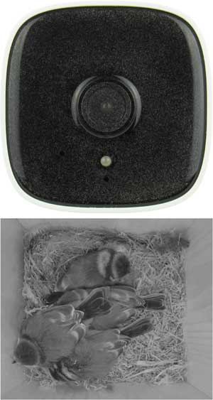 Kameras haben wir seitdem nur noch an einem Punkt an der Rückwand der Nistkästen befestigt, ohne dass die Kamera zusätzliche Punkte wie zum Beispiel die Decke berührt.