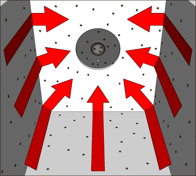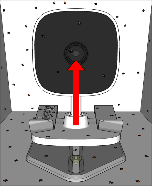 Da Milben nicht fliegen oder springen können, kann die Kameralinse jetzt nur noch von einer Seite erreicht werden. Und von dieser einen Seite auch nur noch von einem Punkt aus, statt wie zuvor mit Zwischendecke von allen vier Seiten von der jeweils gesamten entlanglaufenden Kante aus.